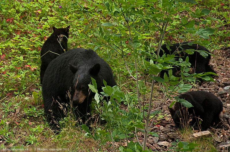 Mama and THREE cubs focused on chowing down strawberries (at least according to the wildlife researcher we met the next day) near the Buttereau Trail.