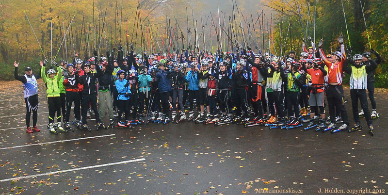 Roller skiers congregated in Gatineau Park this morning, attempting to gather the largest number of roller skiers ever recorded in one location. Although there was a good showing, I am not sure if the number was greater than 2 years ago. Does anyone have the official tally? In any case I will post a gallery of photos tomorrow.