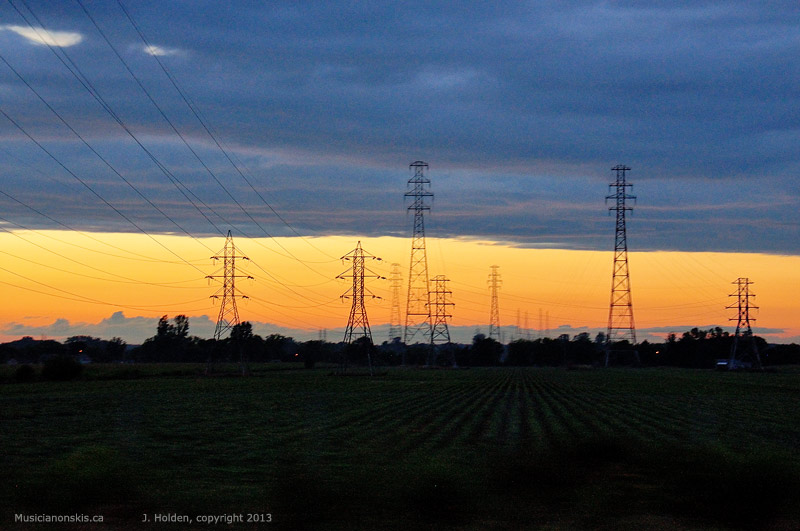 A sobering array of electrical pylons captured through an open car window (Garry was driving! ) This was taken near Beauharnois, Quebec and has also been posted in Blind Eye.