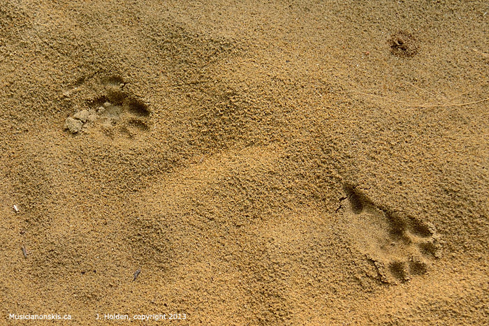 I haven’t yet looked up these tracks to see whether they belong to something interesting or someone’s pet.  They were in a swampy area alongside deer tracks, and about half the width of my palm, fairly small.  (hmmmm, mink,    otter?)