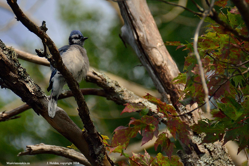 A young jay, still missing his top feathers. He looks as though he is wearing his dad’s overcoat!