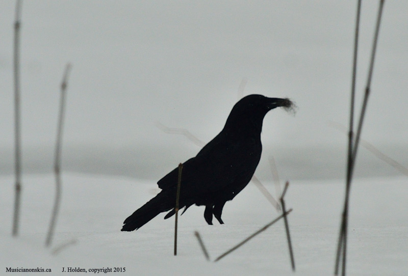 It’s that time of year again.   Crow with a beakful of nest insulation – collie fur.