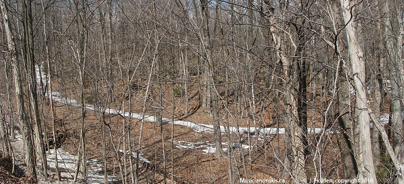 From yesterday’s first bike trip of the the spring – looking down on the ribbon of snow left on the visitor’s center trail.