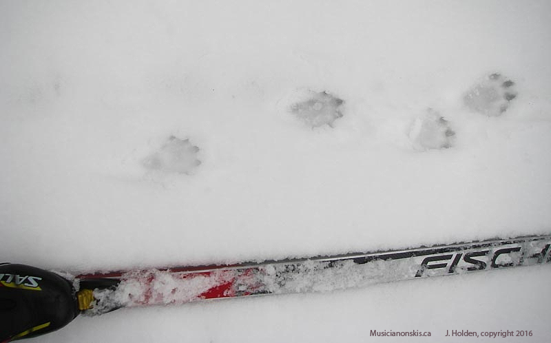 Mustelid tracks? They were on Ridge Road, continuing for a long stretch between Huron and 1B. Mink? Fisher? Or otter? The tracks were all in groups of 4, and every so often there was a 4 0r 5 inch wide slide in the snow.