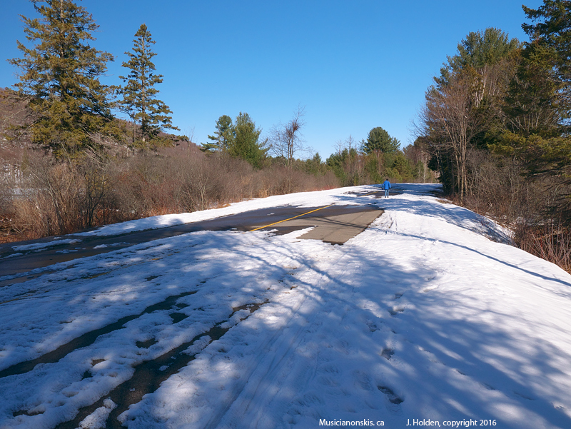 This morning’s snow on the Gatineau Parkway. It was 5 below zero, too icy for skiing at that hour, but ok for walking. It was too hard-packed to even leave footprints. The geese were sitting forlornly in the middle of the pond, apparently frozen in place while they waited for spring.