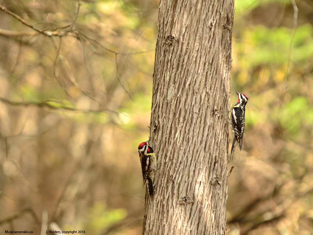These two sapsuckers were jetting through the trees and doing dizzying spirals around tree trunks. Sugar highs from all that sap or trying to impress a lady?