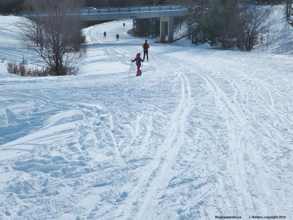 A real ski! Yesterday’s soft preliminary grooming was pretty much destroyed by mid morning, but skiers were out in droves enjoying the cold weather and fresh snow. Teams, groups, individuals of all ages. Great to see! (keep clicking for a select few from of the cast of thousands)