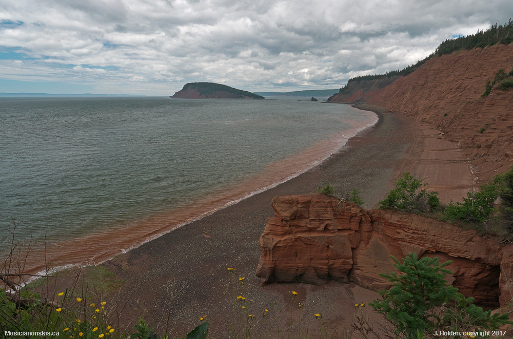 The Old Wife seen while looking back  – and down – from the fenced cliff-edge of a hiking trail.