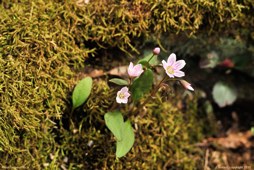 Spring Beauties. In real life these flowers are too small to notice unless you are looking for them! These ones are growing on moss covered boulders.