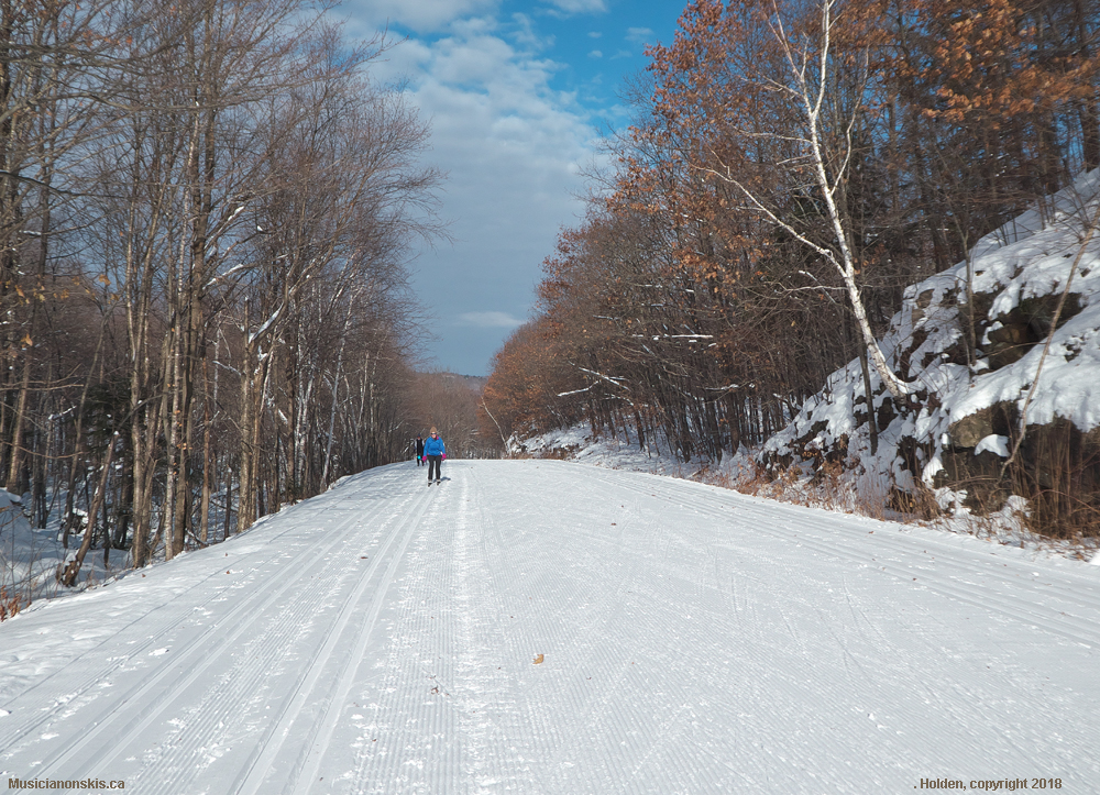 The Chelsea thermometer read minus 22 in the morning, but it warned up quite a bit over the morning. Except for a disconcertingly huge number of oak leaves in many of the classic tracks, it was a pretty good ski day.