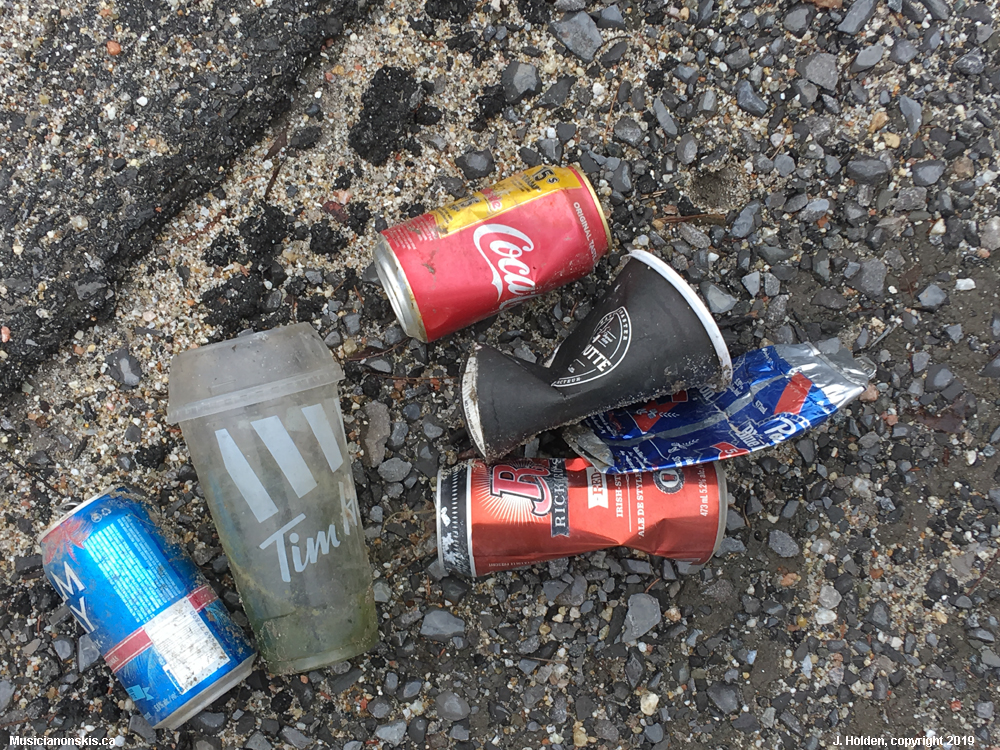 I went for a short run to P8 yesterday to check out the snow. The amount of snow left is still rather shocking, but even more shocking was the amount of trash along the road between Scott Road and P8. I ended up climbing into the ditches and rooting among the wet leaves for the obvious tins and cups, but was able to carry only a small percentage of what was there. It is visible only for a short period of time before the undergrowth obscures it for another year. And it does seem that beer cans are winning out over coffee cups.. and roadsides in Chelsea are even worse!