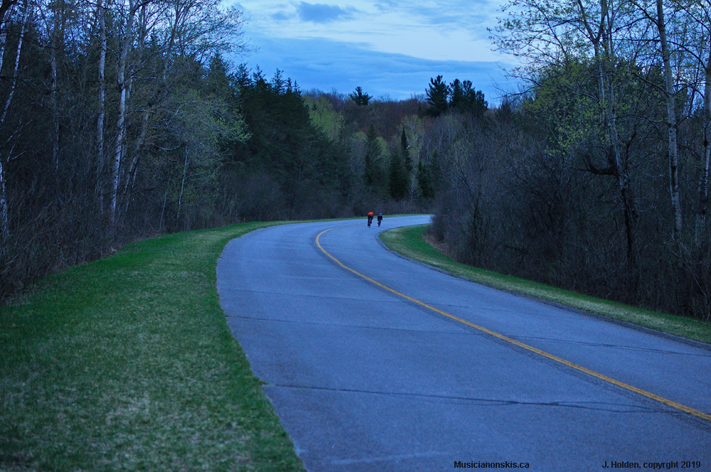 Last cyclists heading home at sunset