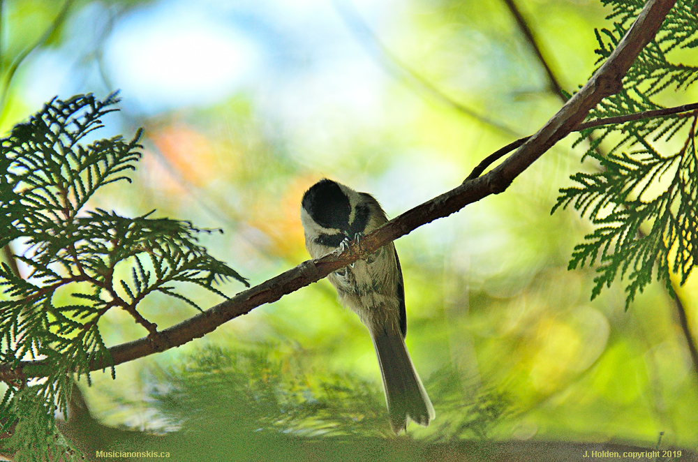 Chickadee in the cedars
