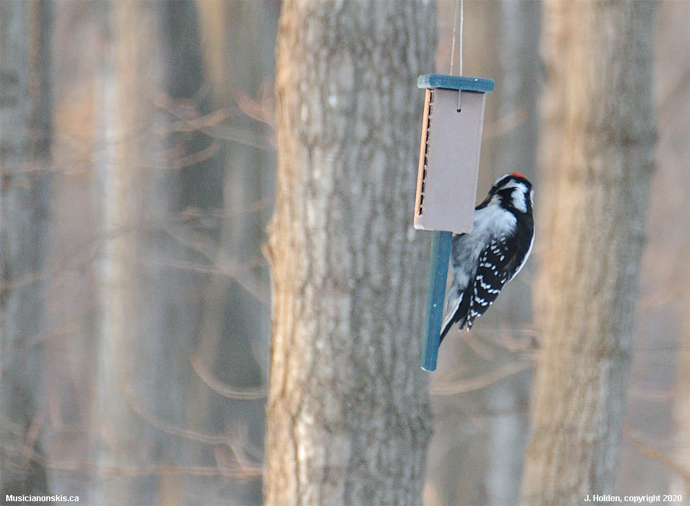 Remember the little downies from two photos back? Here is their big cousin, a hairy woodpecker.