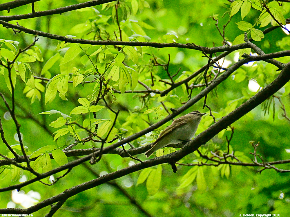 Red-eyed vireo singing constantly outside our window. They seem to be plentiful in the park this year, too. They do sing continuously. All day.