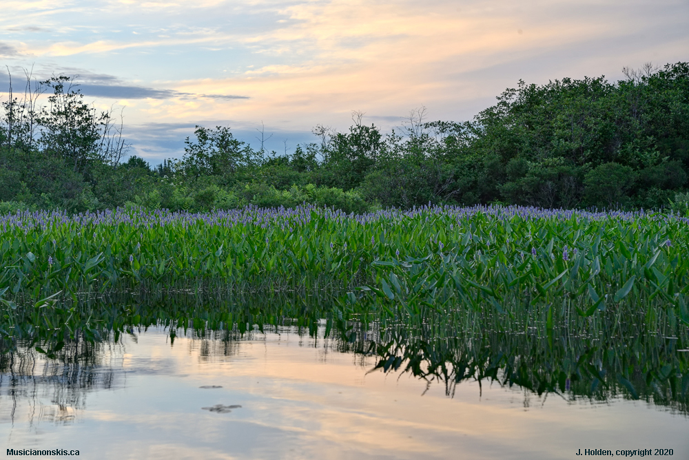 Moody sunset and pickerel weed. The lake has become a duck pond. Where are the mergansers, wood ducks and blue heron? How many ducks does it take to throw the whole balance off? There are around 40 mallards! Someone is been feeding them for sure. This is a small lake that you can kayak around, at a relaxed pace, hugging the entire shoreline, in about 2 hours. 40 ducks is ridiculous!