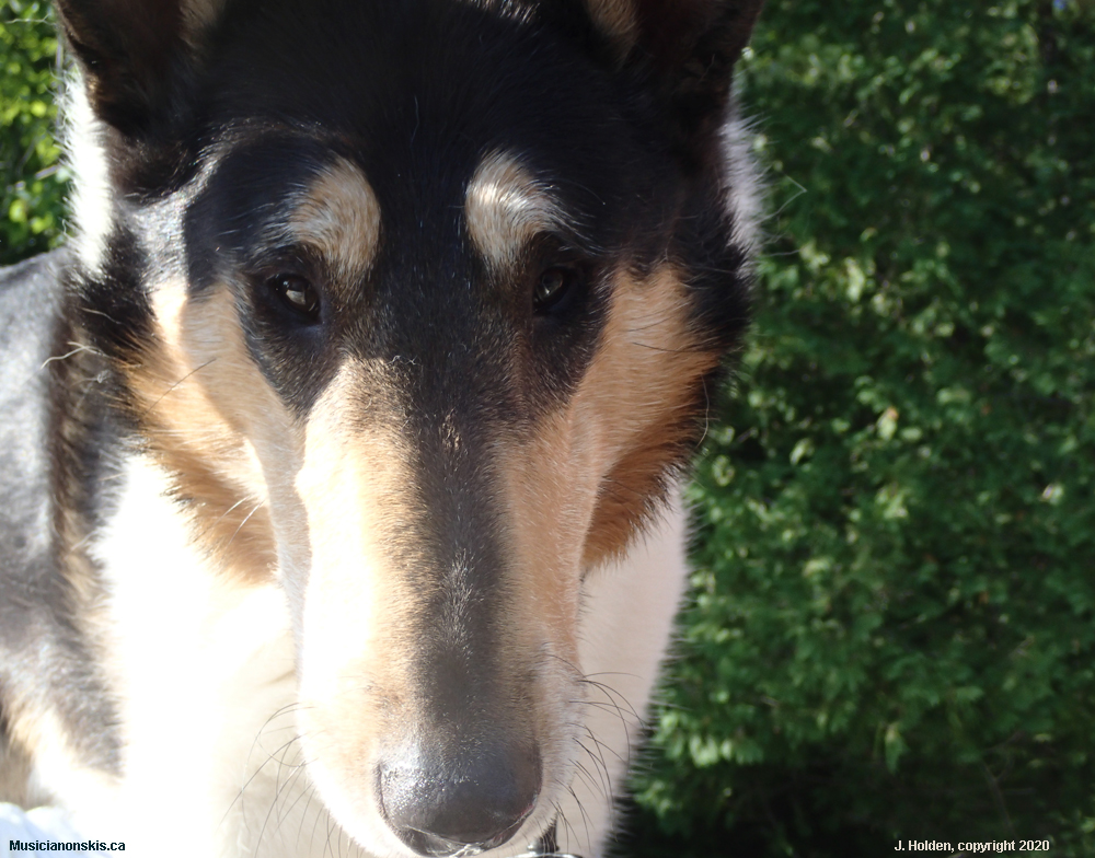 Torin, looking down off the edge of the dock (blocking access to the ladder), wondering why on earth anyone would actually choose to swim. One of my previous collies did love to swim and would even swim in circles on his own anytime we passed a creek or pond.