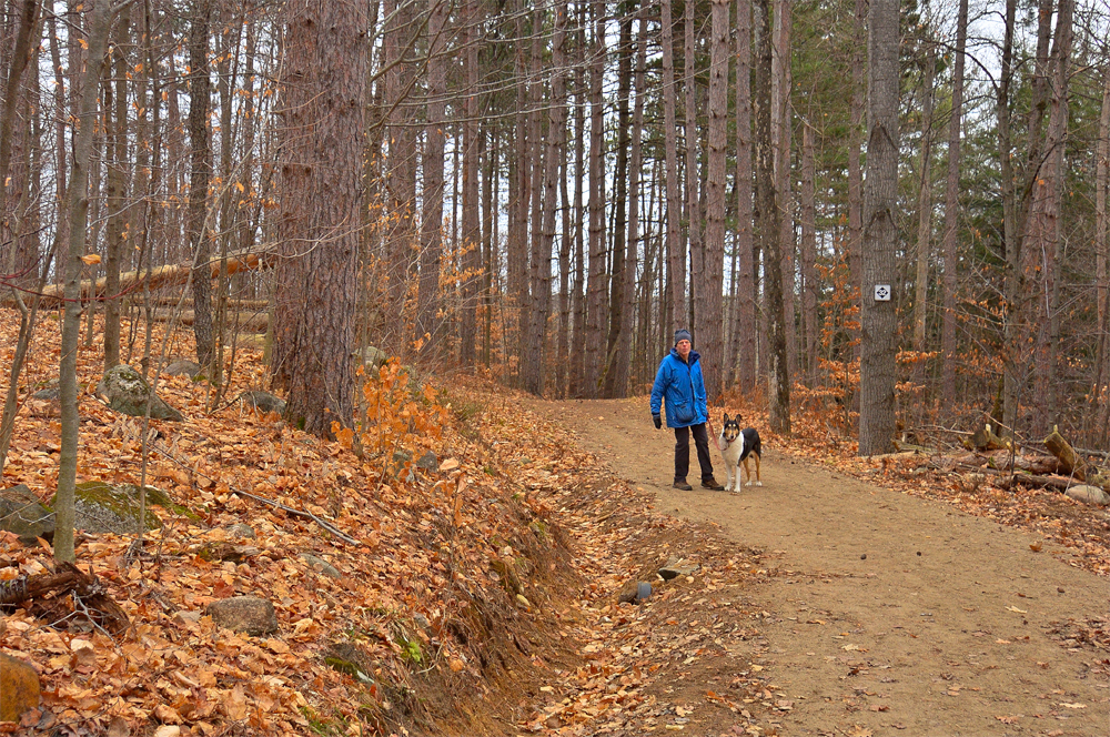 Some of the connector trails have been greatly improved this fall – including this one between P9 and P10. No rocks now – should be much improved for skiing.