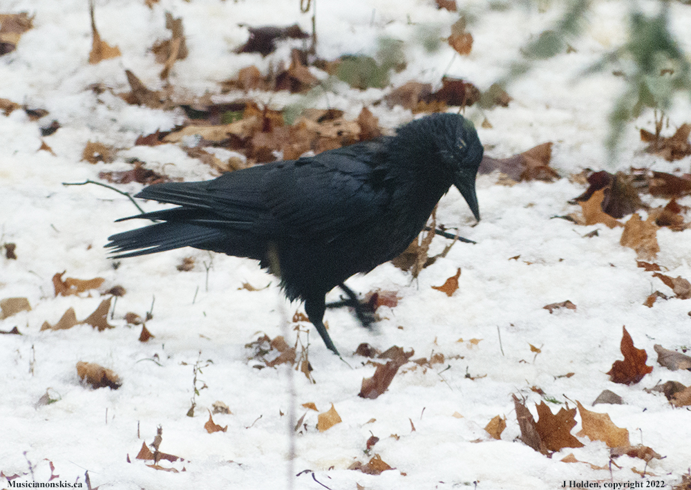 It’s tricky to get any photos of the two crows. They are the shyest and most polite of all the birds who visit our yard. It took them a few years just to venture into the yard. This was a through-the-window photo.