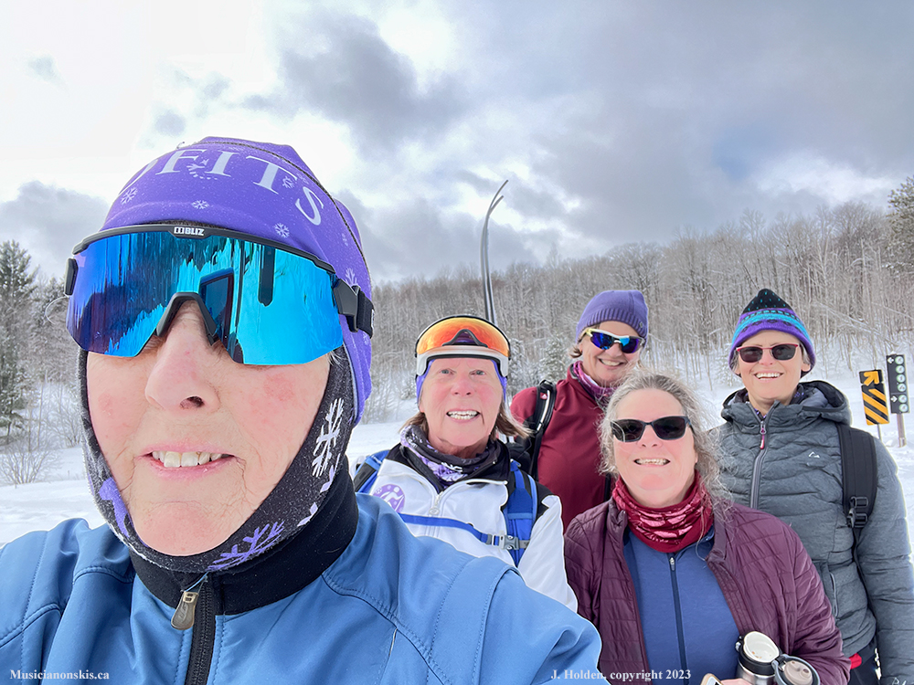 A selfie with my tiny friends in the background. Awesome ski conditions today in the park.