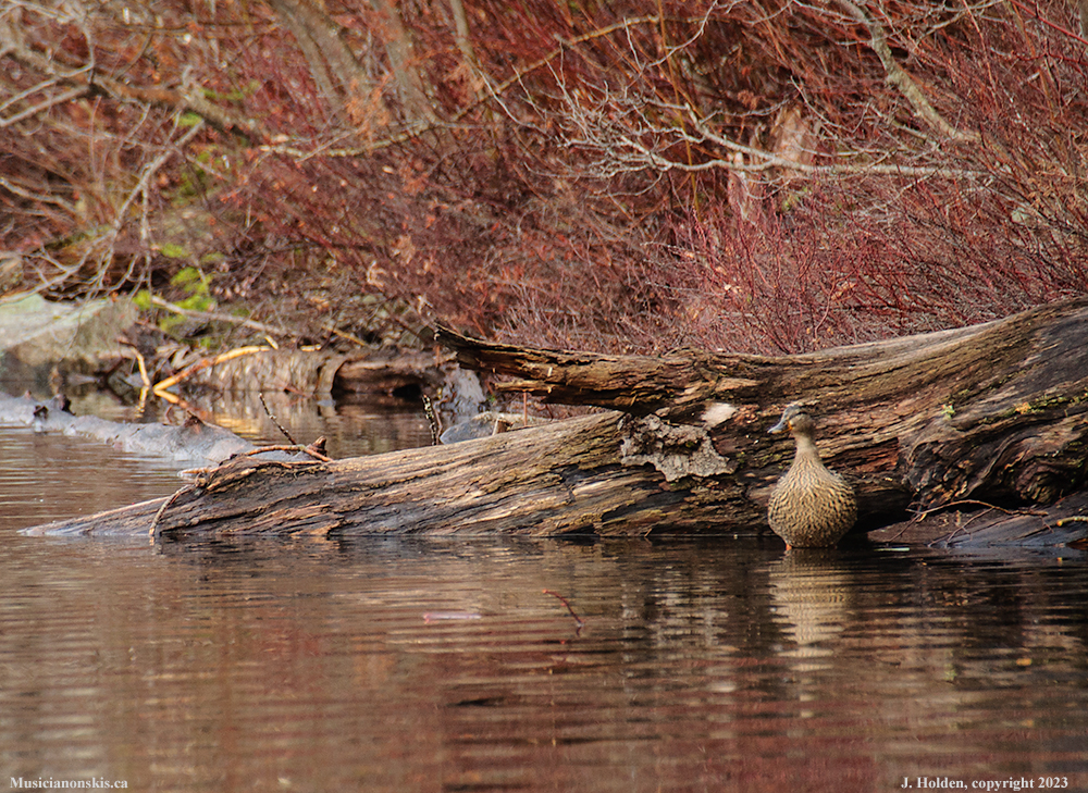 Ms duck seeks out a quiet spot away from the noisy boys.