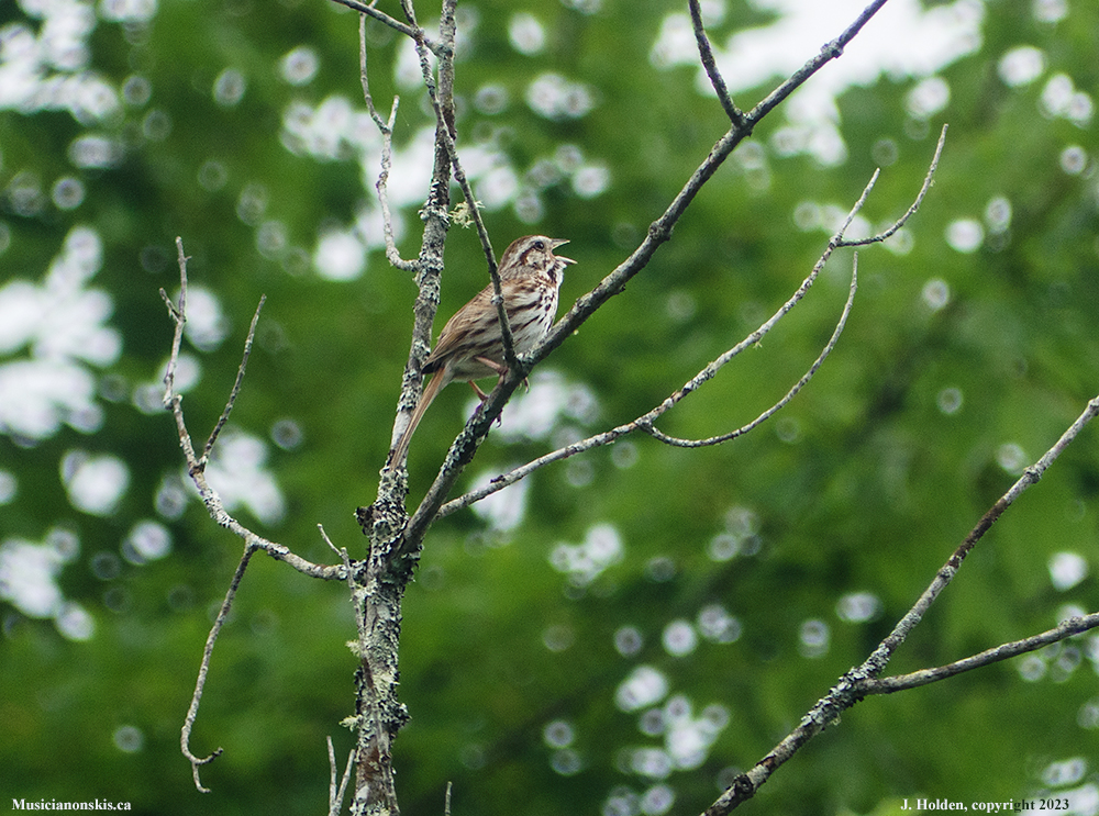 Another song sparrow, singing his heart out near the shore.