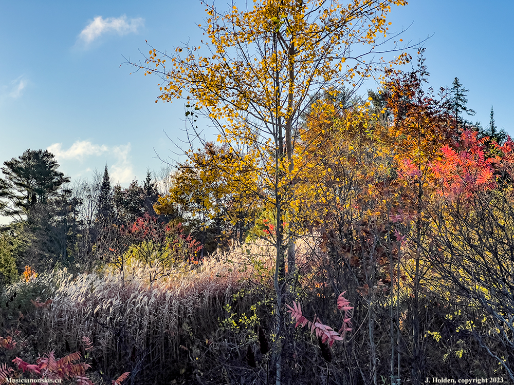 A photo from Monday- vibrant colours of an early morning side-lit garden beside the Chelsea Community Trail.