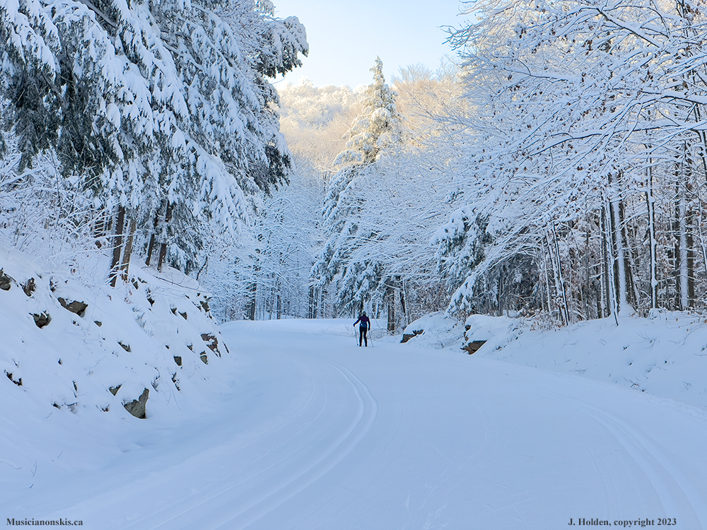 My first ski from P10 this year and it did not disappoint. As you can see, the morning sun had reached only the tops of the trees. Brrrr.