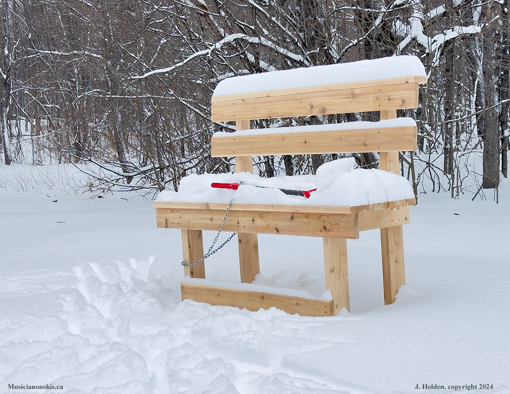 Interesting new bench at trail 52. It looks like you could keep your skis on while sitting there.