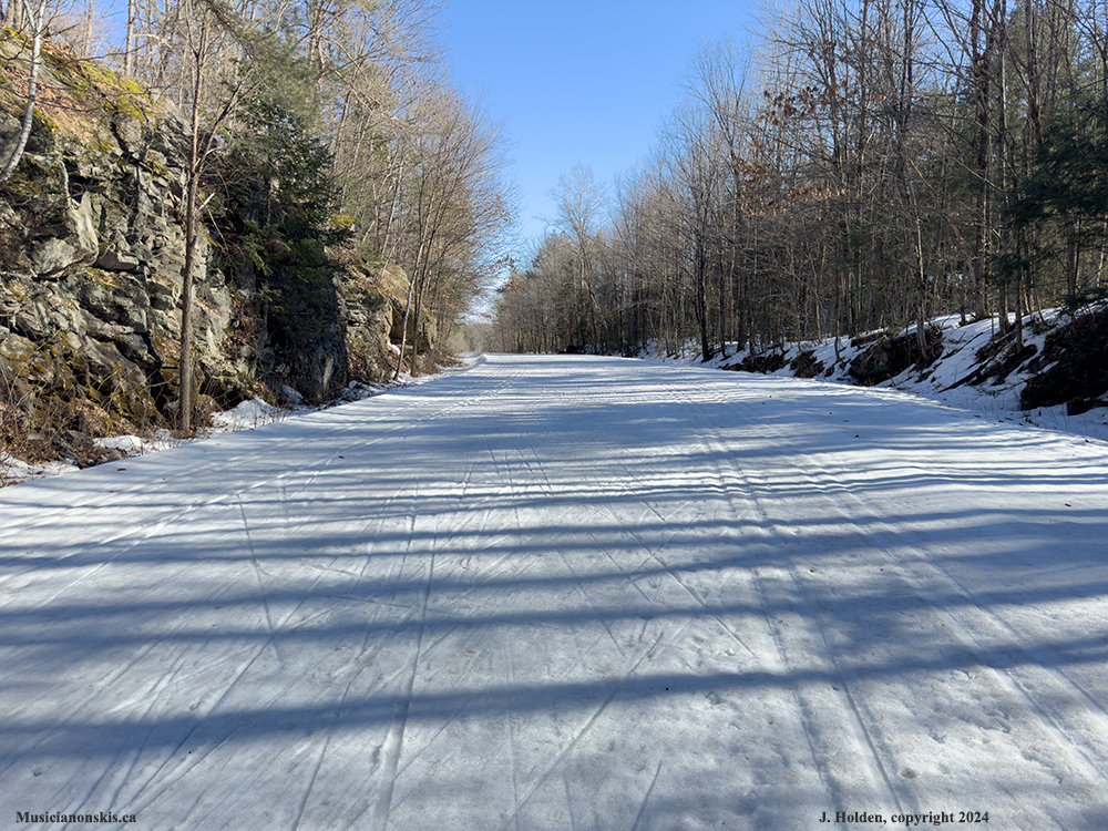 Usually the north loop melts before the Fortune Parkway, but yesterday the North Loop still had full coverage. The spring skiing conditions were aamazing but very few skiers were out.