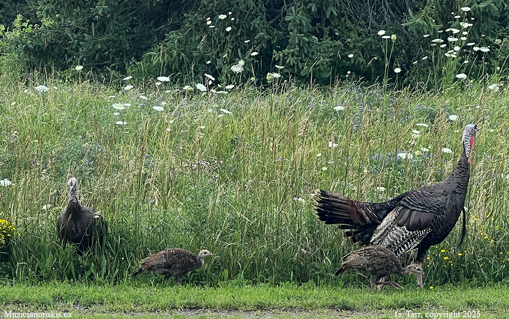 A family of wild turkeys spotted by Garry while he was cycling on the George Etienne Cartier Parkway.