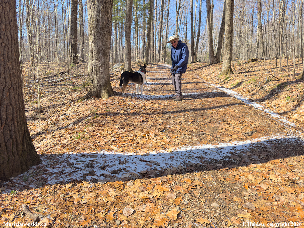 Near Wattsford Lookout on a dazzling, cold morning. Look at the snow in the shadows of the bigger trees! It was still well below zero at the time but April sun is intense.